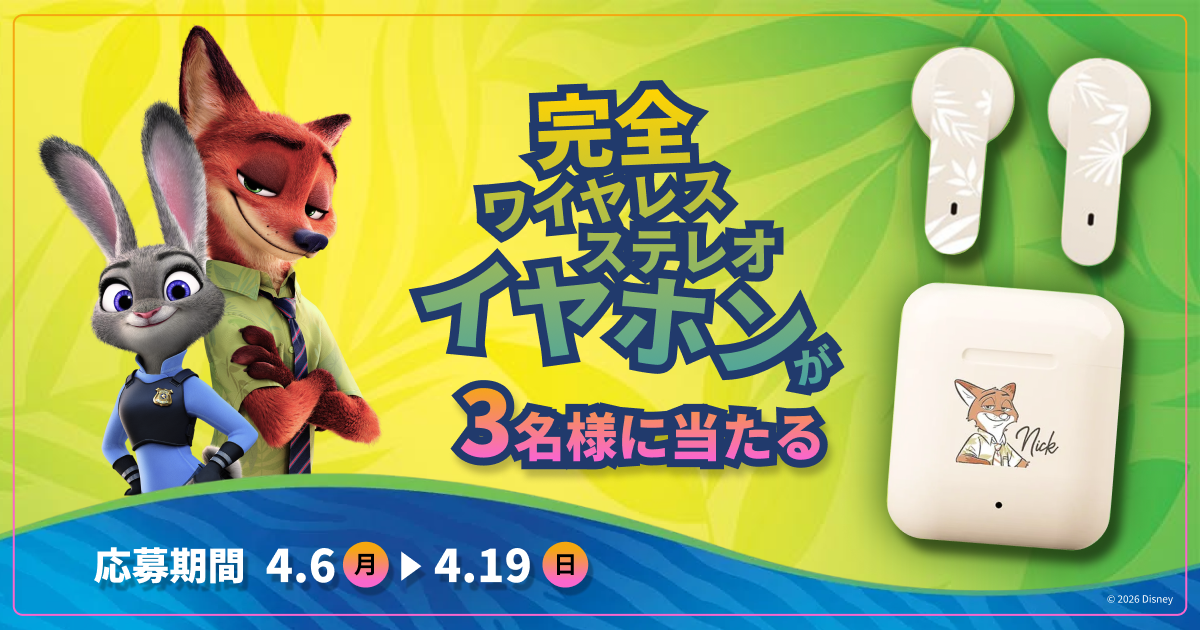 抽選で3名様に『ズートピア』デザインのワイヤレスイヤホンをプレゼント✨